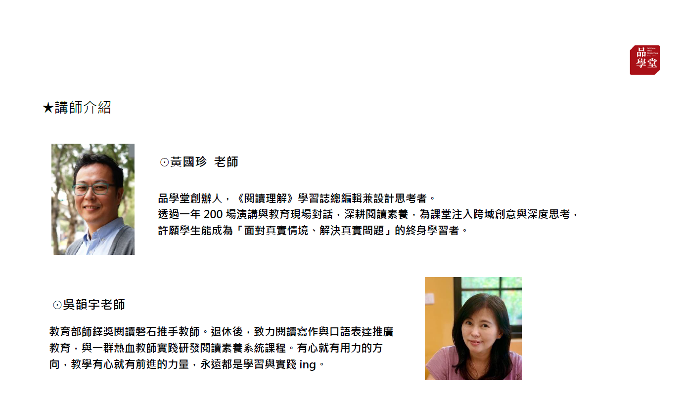 品學堂 創辦人 黃國珍 敬上
