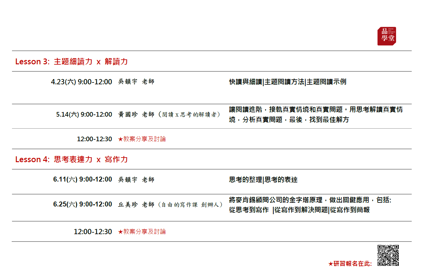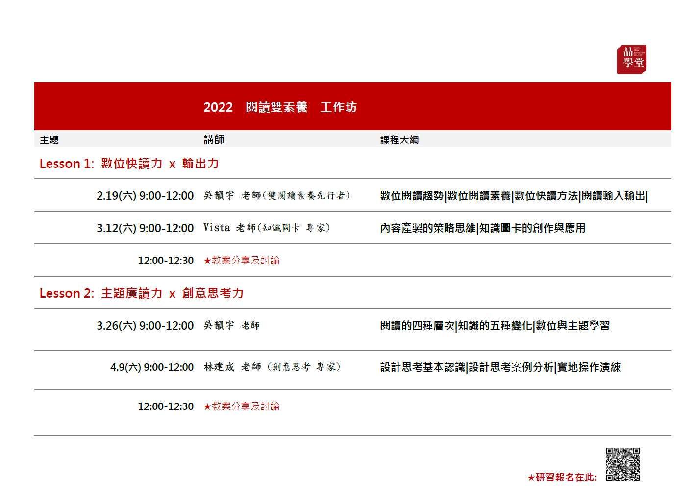 ☉研習時間&報名