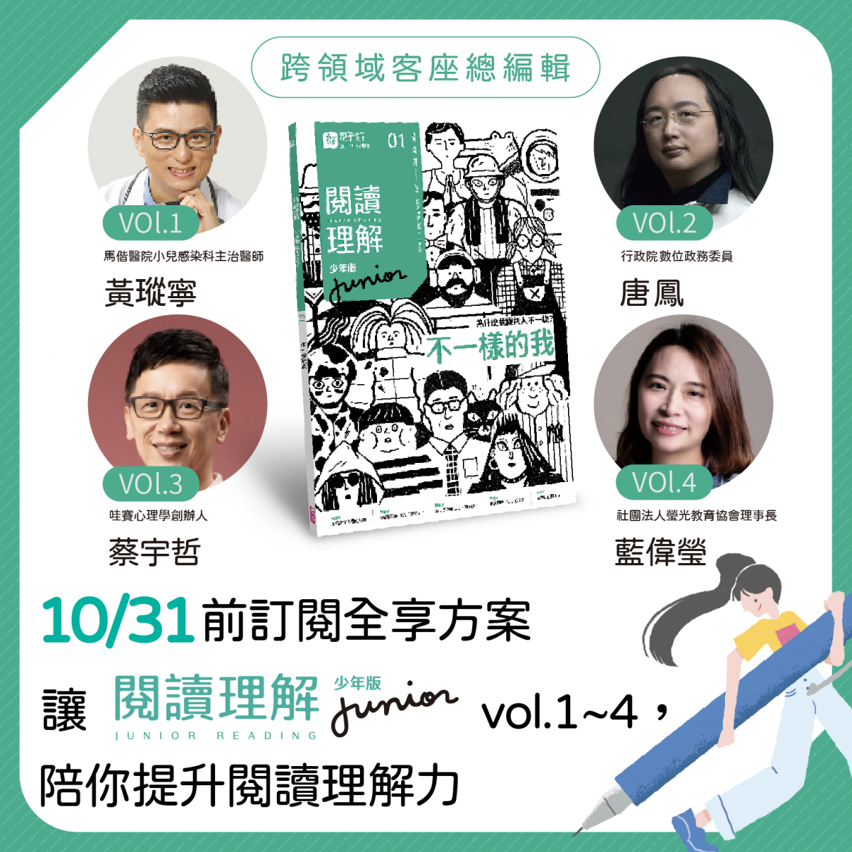 - 線上課程:【閱讀理解junior專區】每月定期素養解題影音課,由黃國珍總編輯和閱讀名師群親授。